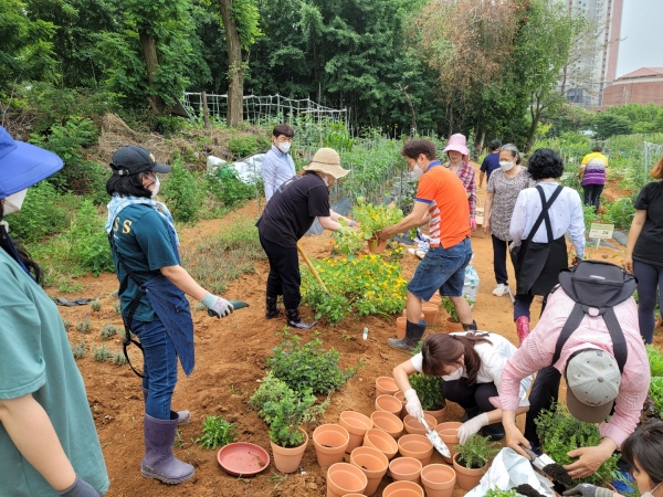 ‘허브 심기’ 프로그램은 장애학생 10가족을 대상으로 50여 일 동안 아이와 함께 공동 텃밭에서 키운 바질, 라벤더, 민트, 세이지 등 다양한 허브를 화분에 옮겨 심었다.