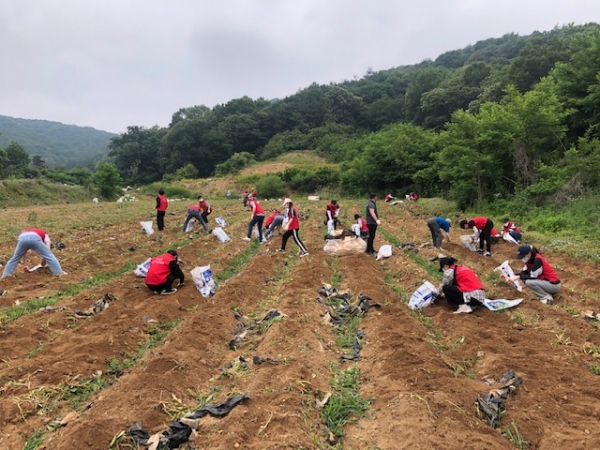 안성시자원봉사센터를 통해 한국디자인진흥원의 자원봉사 신청을 받은 안성시농업기술센터는 죽산면 친환경농가를 소개했고 지난 17일 한국디자인진흥원 임직원 26명은 죽산면 용설리 농가를 방문해 감자밭 2,168㎡의 수확을 도왔다.