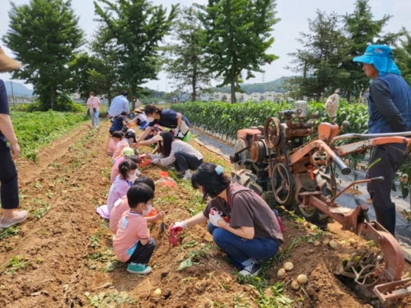 [충청뉴스큐] 아산시는 공공급식 신뢰도를 높이고 로컬푸드의 우수성을 알리기 위해 오는 29일까지 관내 어린이집 원아를 대상으로 감자 캐기 체험행사를 추진중에 있다.