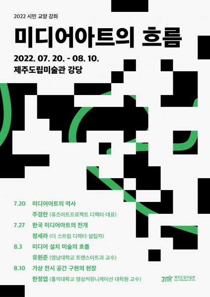 [충청뉴스큐] 제주도립미술관은 성인을 대상으로 상반기 시민 교양 강좌인 ‘미디어아트의 흐름’을 7월 20일부터 대면 강좌로 운영한다고 밝혔다.