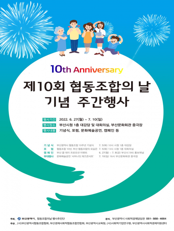 [충청뉴스큐] 부산시가 7월 2일 ‘협동조합의 날’을 기념해 오늘부터 7월 10일까지 약 2주간 협동의 가치를 알리기 위해 ‘협동조합의 날 기념 주간행사’를 운영한다고 밝혔다.