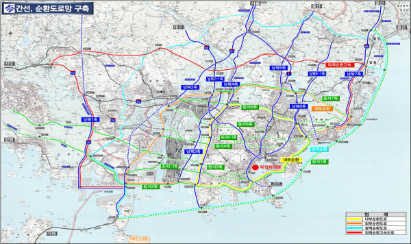 부산시의 기본골격을 형성하는 도로망 체계는 도심, 산, 하천과 바다를 아우르는 부산의 특수한 지형 여건을 반영하고 부산시 도시기본계획의 생활권 공간구조 계획과 기존 도로망을 고려해 4개의 순환도로망에 동서 7개 축과 남북 7개 축의 격자형 도로망을 구축하고 4개의 보조축으로 이를 보완함으로써 지역 간 균형발전 및 글로벌 메가시티 완성을 이끌 계획이라고 전했다.