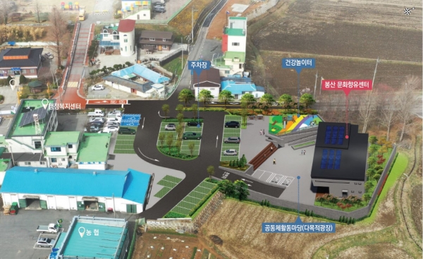 사업에는 총사업비 40억원이 투입되며 봉산면 고도리 55-2번지 일원에 연면적 636㎡, 지상 2층 규모로 문화홀, 체력단련실, 공유주방등의 시설을 갖춘 ‘봉산문화향유센터’와 버스정류장 및 휴게쉼터 등의 ‘황금뜰 쉼터’가 조성될 예정이다.