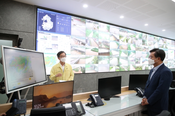 이날 오전 재난상황실을 방문한 김 당선인은 이진찬 경기도 안전관리실장으로부터 호우 대처 및 피해 상황을 보고 받은 후 철저한 대응을 주문했다.