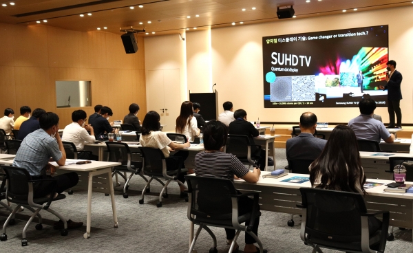 임재훈 교수는 ‘친환경 에너지절약형 차세대 디스플레이 소재 및 소자 기술’을 주제로 한 강연에서 “양자점 전계발광소자는 천연색의 순도를 실감나게 재현할 차세대 발광소재로 고해상도·장수명 디스플레이 구현을 통해 차세대 디스플레이 산업을 이끌게 될 것”이라고 강조했다.