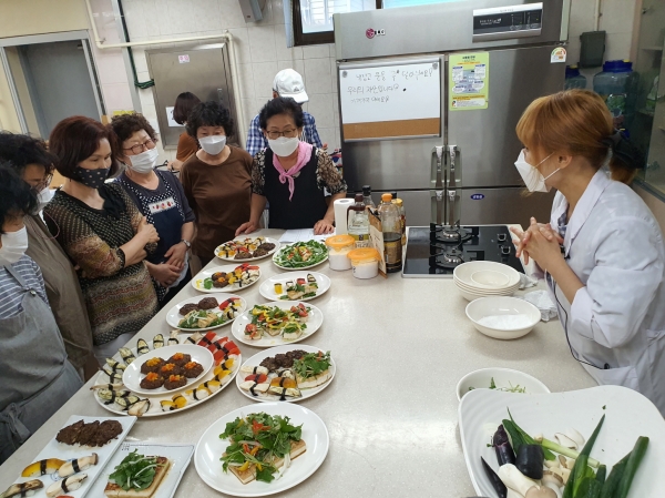 교육은 한식 디저트의 종류 및 특징에 대한 기초 이론을 시작으로 지역에서 생산되는 농산물을 활용한 흑임자 티라미수 콩가루크럼블 티라미수 크림치즈 곶감말이 포도과편 등 6종의 전통 한식과 전통 한식을 재해석한 퓨전 디저트까지 접할 수 있도록 알차게 구성됐다.
