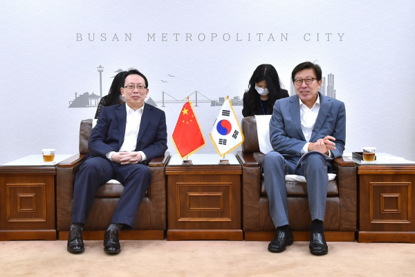 박형준 시장은 “총영사의 시청 방문에 감사드리며 자주 만나 협력을 논의하자”고 인사를 건넸고 꾸어펑 총영사는 박 시장의 재선을 축하했다.