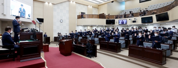 이어 각 상임위원장으로는 행정안전위원회 신동섭 의원, 문화복지위원회 김종득 의원, 산업경제위원회 정해권 의원, 건설교통위원회 임관만 의원, 교육위원회 신충식 의원, 의회 운영위원회 한민수 의원 등이 각각 맡게 됐다.