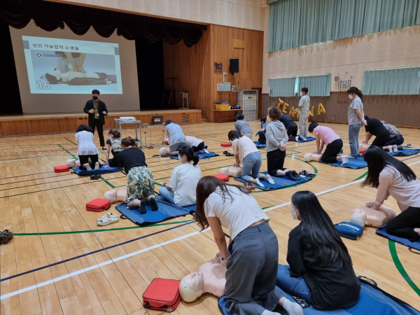 교육 내용은 응급 상황 시 행동요령 심폐소생술의 이론 및 실습 소아·영아 심폐소생술 자동심장충격기 사용법 등으로 전문강사와 함께 실습 위주로 진행하고 있다.