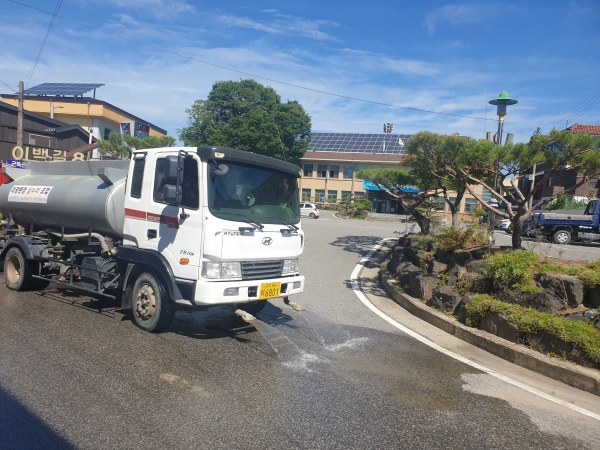군은 지난 6월 30일부터 폭염주의보가 발효되며 연일 무더운 날씨가 이어지자 도심 온도를 낮추기 위해 4대의 살수 차량을 동원했다.
