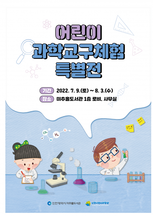 [충청뉴스큐] 인천광역시는 오는 7월 9일부터 8월 3일까지 미추홀도서관 1층에서 ‘어린이 과학교구체험 특별전’을 개최한다고 밝혔다.