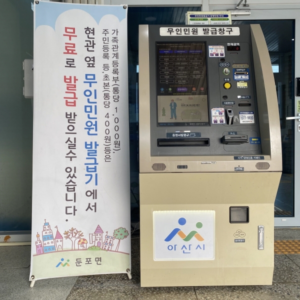 [충청뉴스큐] 아산시가 지난 5일부터 둔포면 행정복지센터와 온양2동 행정복지센터의 무인민원발급기 4대를 연중무휴 24시간 운영하며 적극적인 시민 중심 행정서비스에 나섰다.