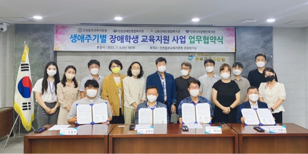 [충청뉴스큐] 인천동부교육지원청은 인천장애인종합복지관, 남동장애인종합복지관, 인천시각장애인복지관과 생애주기별 장애학생 교육지원 활성화를 위한 업무 협약식을 체결했다고 7일 밝혔다.