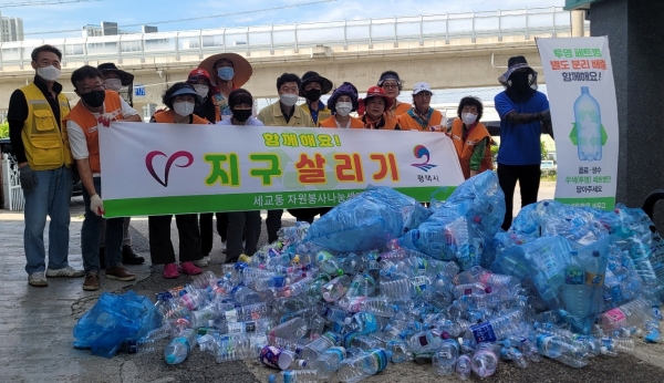 [충청뉴스큐] 평택시 자원봉사나눔센터는 지난 7일 자원봉사나눔센터 회원 및 주민 20여명이 신대동 주차장에 집결해 생활 속 탄소중립 실천의 일환으로 관내 놀이터 및 경로당 주변일대에서 모아온 폐 페트병에서 포장 비닐을 분리하고 재활용품 분리배출 활동을 실시했다고 밝혔다.