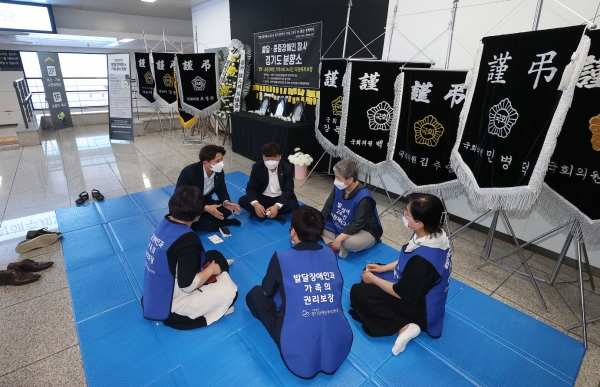 남종섭 대표의원과 황대호 수석대변인은 이곳 분향소에서 헌화와 묵념을 한 뒤 발달장애인 가족들과 간담회를 가졌다.