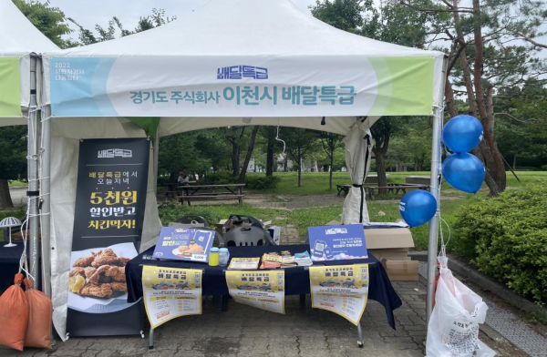 가장 먼저 배달특급은 지난 8일 이천시에서 열린 ‘2022년 제2회 이천시 사회적경제 나눔장터’를 찾아 배달특급 홍보 부스를 설치, 시민들에게 배달특급을 적극 홍보하고 할인 쿠폰을 제공하면서 큰 관심을 끌었다.