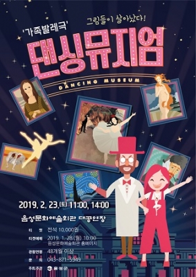 [충청뉴스큐] 음성군은 음성문화예술회관에서 오는 2월 23일 오전 11시, 오후 2시 온 가족이 함께 즐길 수 있는 가족발레극 ‘댄싱뮤지엄’ 공연을 한다고 밝혔다.
