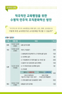 [충청뉴스큐] 광주시교육청은 오는 30일 교육행정기관 조직문화혁신을 위한 원탁토론회를 실시한다고 밝혔다.