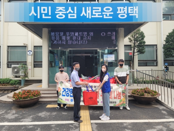 [충청뉴스큐] 한국자유총연맹 신평동분회는 지난 11일 저소득층을 위해 써달라며 농수산물 꾸러미를 평택시 신평동 행정복지센터에 기탁했다.