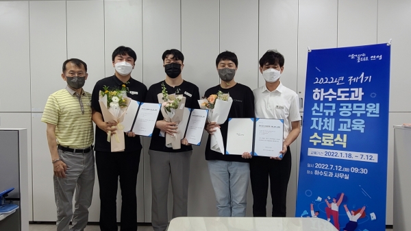 [충청뉴스큐] 안성시 하수도과는 신규 공무원 3명을 대상으로 지난 1월부터 7월까지 ‘제1기 신규 공무원 자체 교육’을 진행하고 12일 수료식을 개최했다.