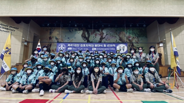제4118단 발대식은 김포 관내 8개 초등학교에서 입단 신청을 한 72명의 컵스카우트 신입 대원과 학부모, 지도자와 내빈들로 성황을 이뤘다.