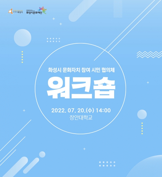 [충청뉴스큐] 화성시문화재단은 오는 7월 20일 오후 2시 장안대학교에서 ‘화성시 문화자치 참여 시민 협의체 워크숍’을 개최한다고 밝혔다.