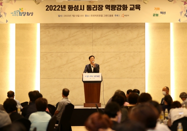 [충청뉴스큐] 화성시는 13일 행정기관과 주민들의 가교역할을 담당하고 있는 통장과 이장의 직무역량을 강화하기 위해 ‘2022년 화성시 통·리장 역량강화 교육’을 실시했다.