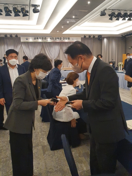 임태희 교육감은 11일 충남 부여에서 열린 교육부장관·시도교육감 간담회에서 박순애 사회부총리 겸 교육부장관을 만나 평택 어린이보호구역에서 발생한 굴착기 사고는 물론이고 이 사건 수사 과정에서 드러난 ‘민식이법’의 맹점을 지켜보는 유가족과 경기교육가족 모두의 안타까움을 대신 전했다.