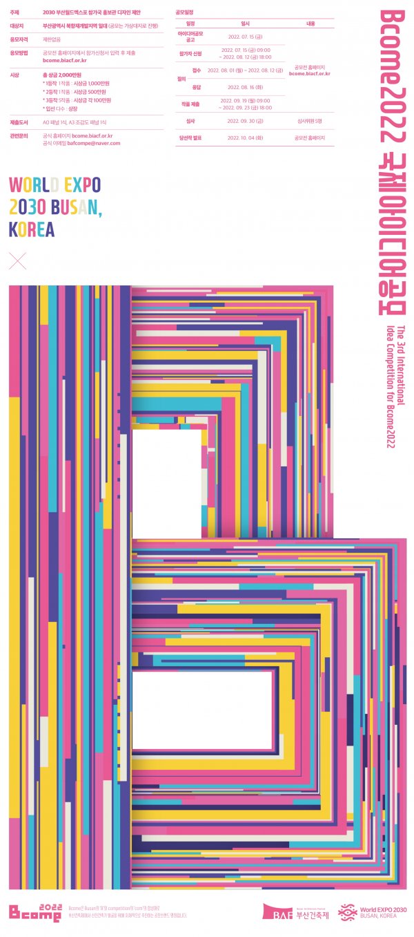 [충청뉴스큐] 부산시와 부산건축제조직위원회는 ‘2030부산세계박람회 참가국 홍보관 디자인’을 주제로 ‘Bcome2022 국제아이디어공모전’을 개최한다고 밝혔다.