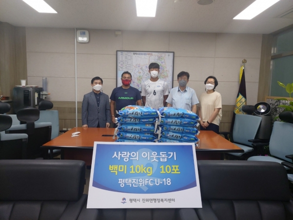 [충청뉴스큐] ‘평택진위FC U-18팀’은 작년에 이어 올해에도 어려운 이웃에게 전달해 달라며 지난 13일 백미 10포를 진위면 행정복지센터에 기탁했다.