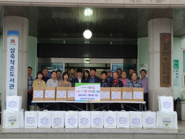 [충청뉴스큐] 안성시 삼죽면지역사회보장협의체는 지난 13일 ‘어르신 소소한 행복드림 사업’을 진행해 독거어르신 56가구에 행복꾸러미와 여름이불을 전달했다.