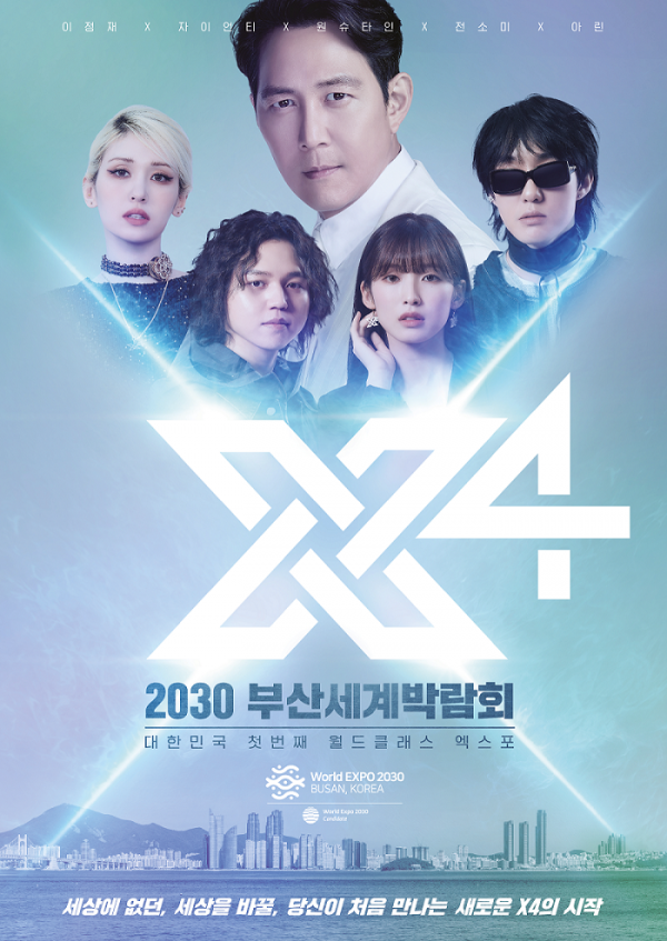 이번 광고의 세계관은 X4 세계관으로 세상에 없던 엑스포 유치를 위해 이정재 씨가 X4엔터테인먼트를 설립하고 자이언티, 원슈타인, 전소미, 아린으로 X4 그룹을 만들어 다양한 홍보활동을 전개해 결국 2030부산세계박람회 유치에 성공한다는 내용이다.
