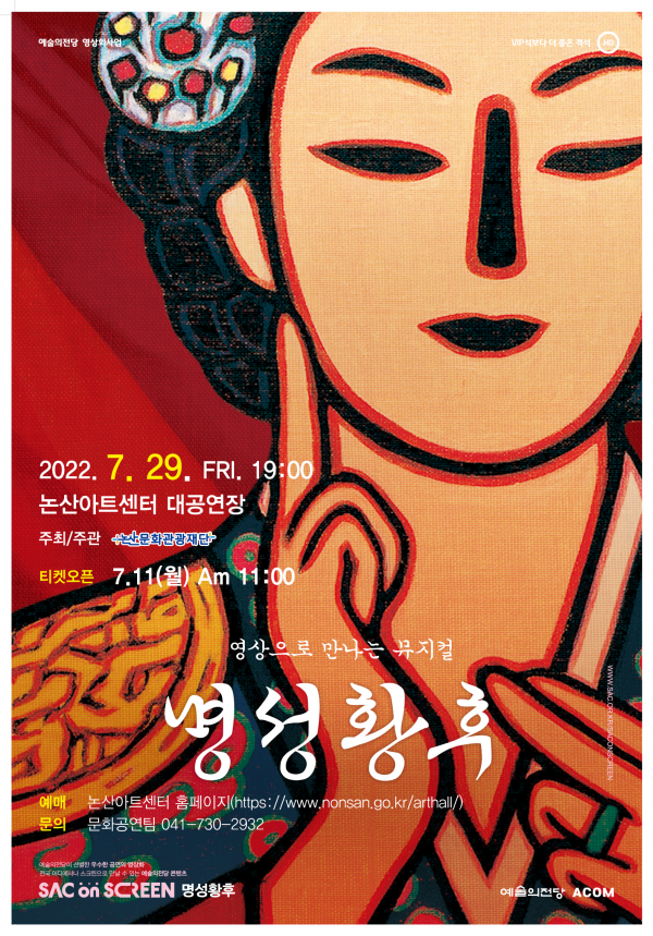[충청뉴스큐] 논산문화관광재단은 지난 7월 11일부터 예매 시작한 두 번째 SAC ON SCREEN ‘영상으로 만나는 ‘뮤지컬 명성황후’’가 조기 매진됐다고 밝혔다.