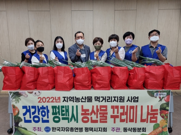 [충청뉴스큐] 한국자유총연맹 평택시지회 동삭동분회는 18일 관내 저소득가정 10가구에 농산물꾸러미를 전달했다.