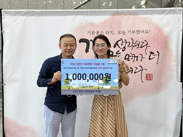 평소 공모전에 입상해 받는 포상금을 기부하겠다고 해왔던 만큼, 자신과 동료직원들에게 다짐한 바를 지킬 수 있어 기쁘다고 구 팀장은 소감을 전했다.