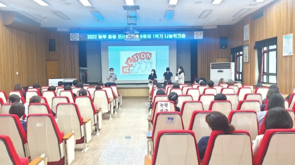 ‘2022 동부 교내형 전문적학습공동체 1학기 나눔워크숍’은 학습하고 실천하는 교사 학습공동체로서의 방향성을 재점검하고 상호성장의 지원체제를 활성화 하기 위해 기획됐다.