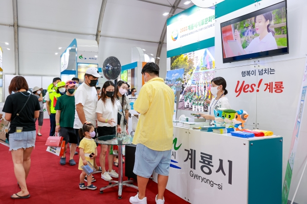 시에 따르면 이번 홍보부스 설치는 오는 8월 15일까지 31일간 개최되는 ‘2022보령해양머드박람회’에 내·외국인을 비롯해 100만명 이상의 관객이 방문할 것으로 예상됨에 따라 관람객을 대상으로 ‘2022계룡세계軍문화엑스포’를 비롯한 아름다운 계룡의 문화와 관광 등을 홍보하기 위한 것으로 알려졌다.