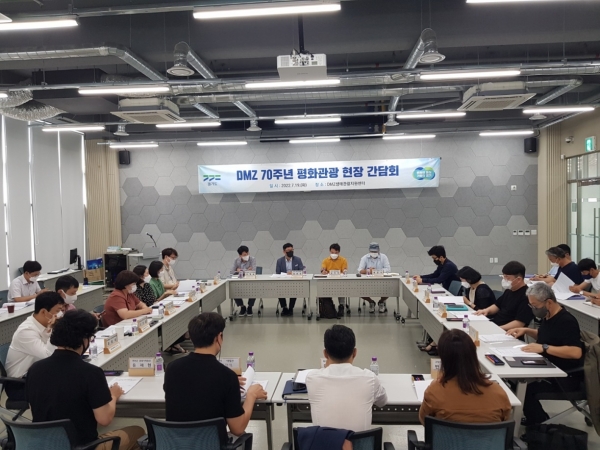 [충청뉴스큐] 경기도가 지난 19일 DMZ생태관광지원센터에서 DMZ 인접 시군 및 민간전문가 등과 함께 ‘DMZ 70주년 평화관광 현장 간담회’를 열고 DMZ 사업에 대한 발전방향을 모색하는 시간을 가졌다.