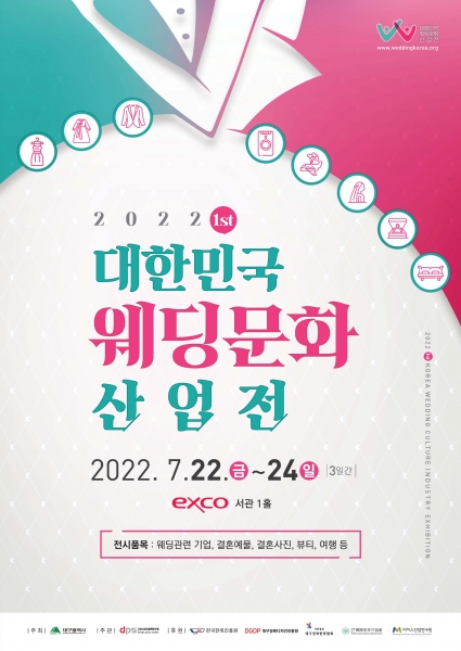 [충청뉴스큐] 지역 웨딩산업 활성화 및 저출산·비혼 인식 개선을 위한 ‘2022 대한민국 웨딩문화 산업전’이 7월 22일부터 24일까지 3일간 엑스코에서 개최된다.