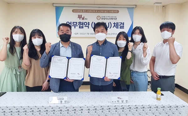 [충청뉴스큐] 안성시노인복지관이 지난 19일 실용음악학원 뿌리아트와 지역사회 내 노인복지 증진 및 문화·예술 서비스 발전을 위한 업무협약을 체결했다고 밝혔다.