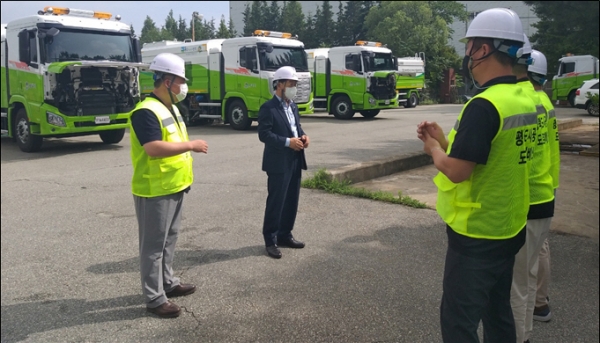 [충청뉴스큐] 김재수 평택도시공사 사장이 신규 수탁사업인 도로 분진흡입차량 차고지를 방문해 안전 조회를 실시했다고 밝혔다.