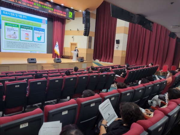 ‘어린이 급식소 식중독 관리하기’를 주제로 강의한 손춘영 동남보건대학교 식품영양학과 교수는 개인위생 관리 식품 보관 관리 식재료 소독·세척 관리 올바른 배식 관리 식중독 예방 관리 방법 등을 설명했다.