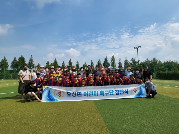 [충청뉴스큐] 평택시 오성면 주민자치회는 주민참여예산 사업 중 하나인 오성면 어린이 축구단 창단식을 지난 20일 숙성레포츠공원 축구장에서 개최했다.