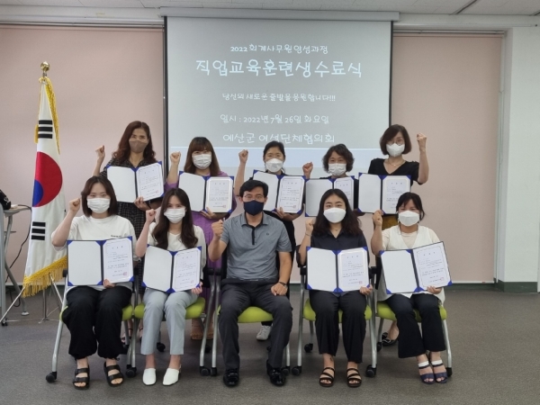 [충청뉴스큐] 예산군은 지난 5월 23일부터 7월 26일까지 여성회관에서 진행한 ‘여성직업훈련 교육’에서 14명의 교육생이 과정을 수료했다고 밝혔다.