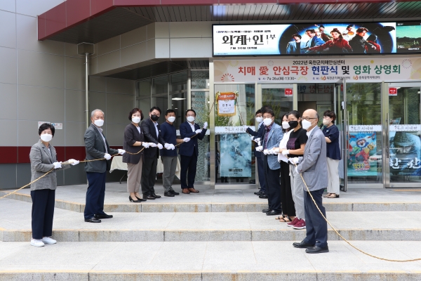 이날 행사는 7월 26일 황규철 군수를 비롯한 군의원, 지역주민 등 70여명이 참석해‘치매 愛 안심극장’지정 현판식과 영화 상영 행사가 열렸다.