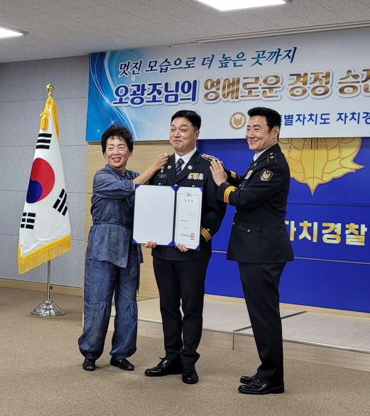 [충청뉴스큐] 제주특별자치도 자치경찰단은 27일 3층 대강당에서 오광조 경정의 승진 임용식을 개최했다.