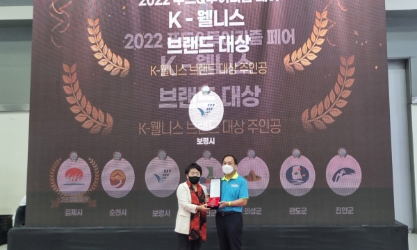 [충청뉴스큐] 보령시는 27일 서울aT센터에서 열린 ‘2022 K-웰니스 푸드&투어리즘 페어'에 참가해 2022 k-웰니스 브랜드 대상을 수상했다고 밝혔다.