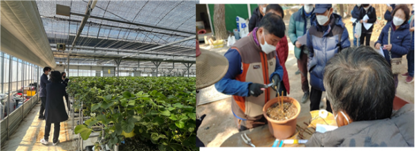 주요 교육 내용은 신품종 딸기 소개, 다수확을 위한 우량묘 만들기 등이다.