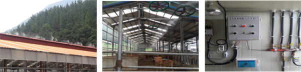 축사 내부 온도 저감을 위해 안개분무장치와 송풍팬을 동시에 활용하거나, 지붕 안개분무시설 이용시 물이 증발되는 과정에서 미설치 농가 대비 축사 내 온도는 2∼3℃ 저감되며 번식률이 10% 향상되는 등의 효과를 기대할 수 있다.