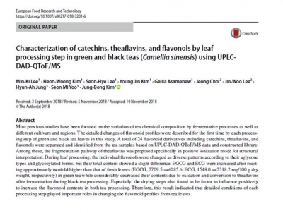 먼저, 녹차와 홍차에 카테킨 4종, 테아플라빈 4종, 플라보놀 16종 등 모두 24종의 플라보노이드 성분이 들어 있는 것을 확인했다.